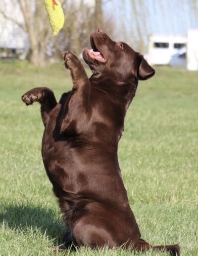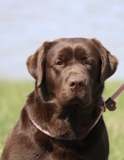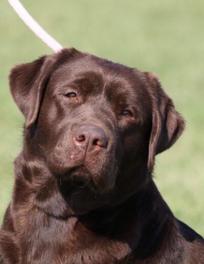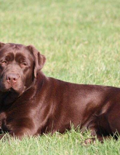 Lara is a gorgeous chocolate female that we imported from Russia. We are seeking a loving retirement home for her. She has all of her health clearances completed with passing grades. Lara will be spayed prior to placement and have a dental completed. She is microchipped, current on all vet work, crate trained, potty trained, travels very well and respectful on a leash during walks. She is wonderful with kids and other dogs. Lara has a lovely temperament and loves to play fetch! She also has a great off lead recall. Please email Glennda at simpsonslabs@gmail.com or call 618-615-7006 to inquire about this gorgeous adult chocolate female.