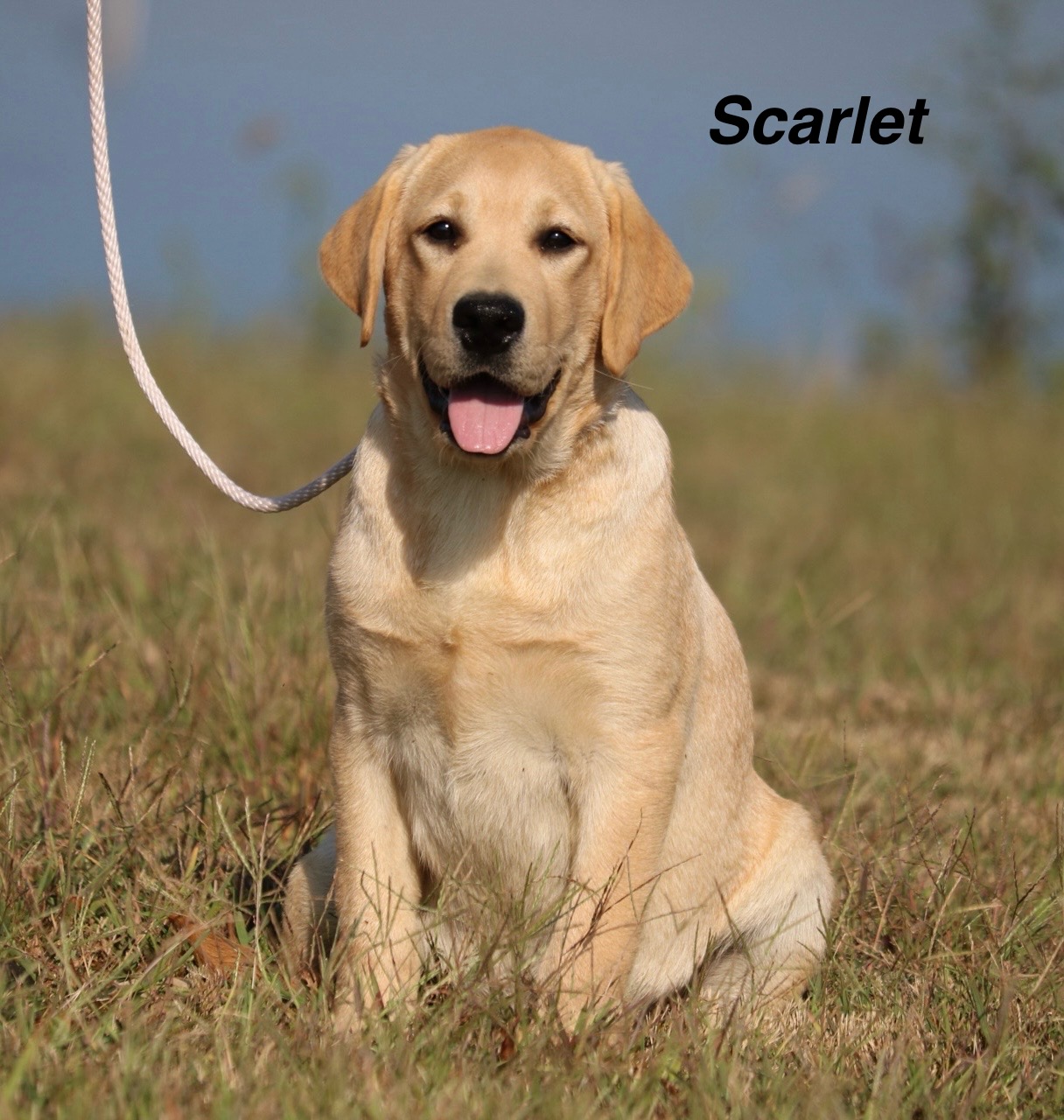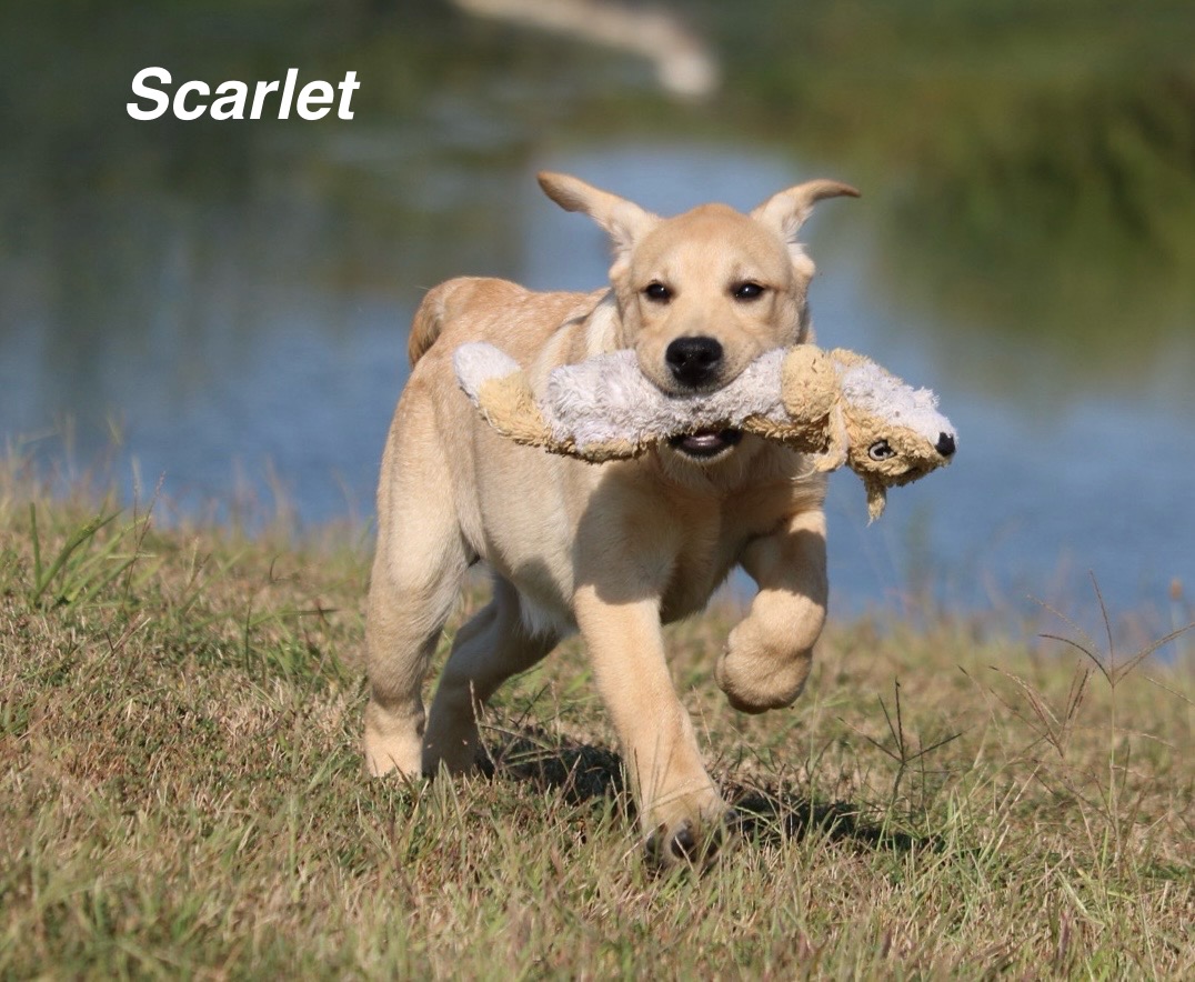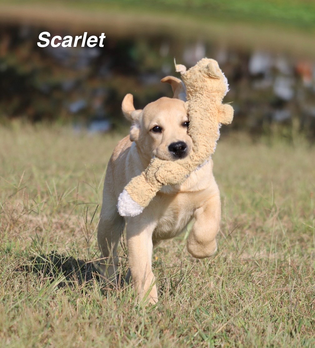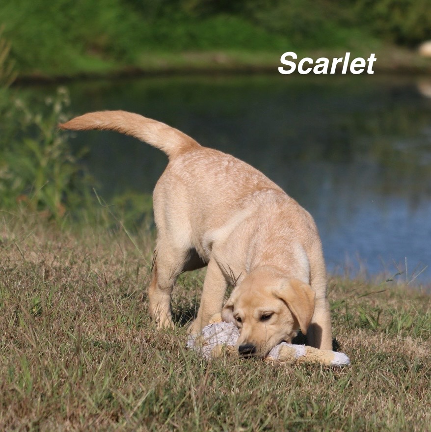 BISS CH Boogie and Sophie had a gorgeous yellow litter on 5/13/2025. We currently have one female available and ready for a home now. Her name is Scarlet. She is doing wonderful with potty training, crate training and already knows how to sit! Scarlet is a confident, friendly, playful pup. Our puppies come with AKC limited registration only, meaning no breeding rights. We do require a questionnaire to be completed before the home is approved. The questionnaire will have to be emailed as it is not on the website. Please call/text Glennda at 618-615-7006 or email simpsonslabs@gmail.com for more information.