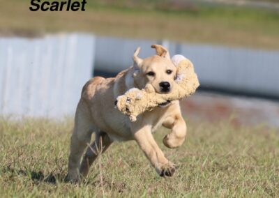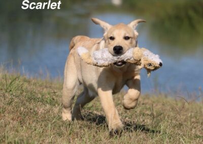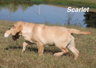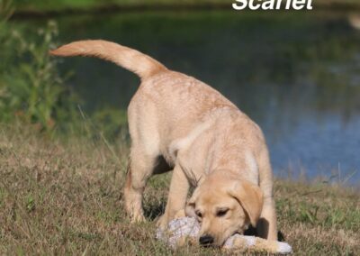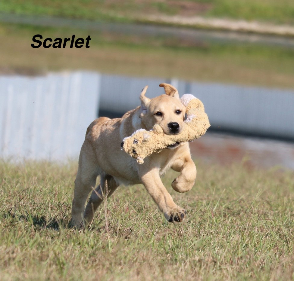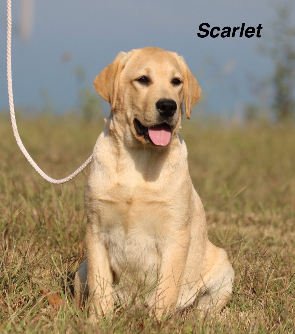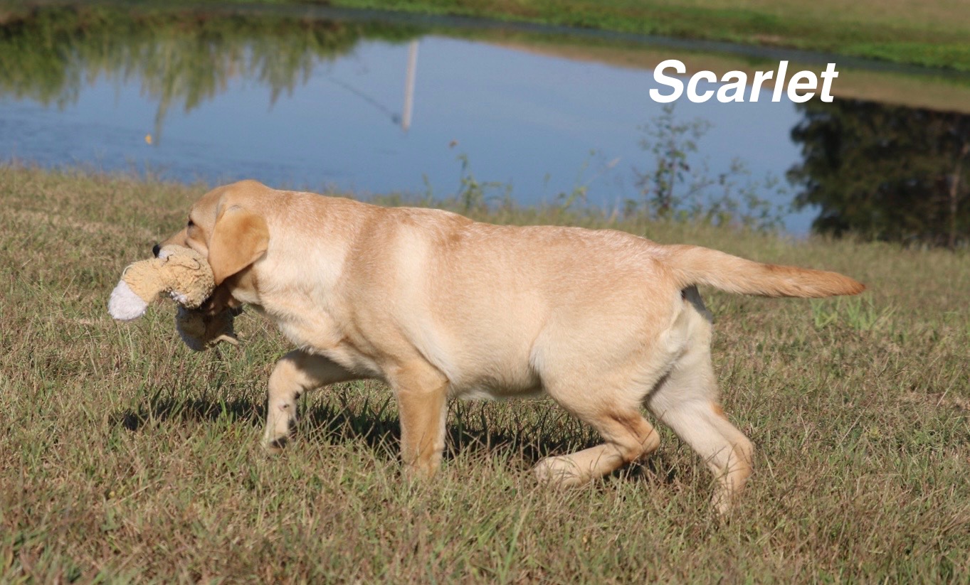 BISS CH Boogie and Sophie had a gorgeous yellow litter on 5/13/2025. We currently have one female available and ready for a home now. Her name is Scarlet. She is doing wonderful with potty training, crate training and already knows how to sit! Scarlet is a confident, friendly, playful pup. Our puppies come with AKC limited registration only, meaning no breeding rights. We do require a questionnaire to be completed before the home is approved. The questionnaire will have to be emailed as it is not on the website. Please call/text Glennda at 618-615-7006 or email simpsonslabs@gmail.com for more information.