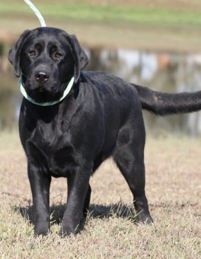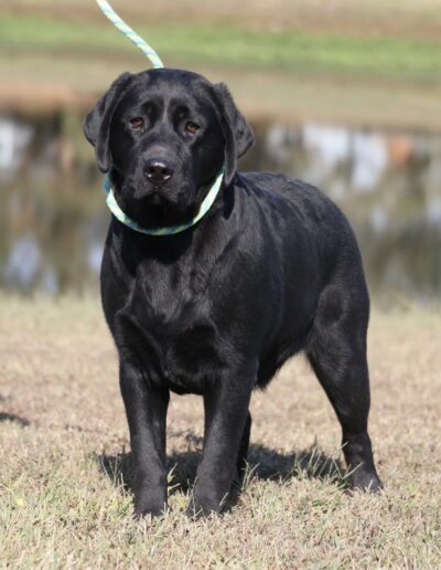 “Zuri” is a beautiful and very sweet 12 month old black female that was born and raised here. She was our pick of her litter but we have recently decided to place her. Zuri is microchipped, current on all vaccines and preventatives, crate trained and respectful on a leash during walks. She loves to play fetch. Zuri is also wonderful with our kids and other dogs. We expect her to mature between 80 and 85 pounds. Please email Glennda at simpsonslabs@gmail.com or call 618-615-7006 to inquire about this lovely female.