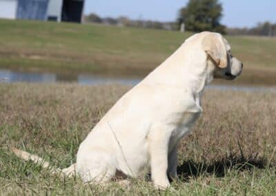 Retro and Jeanie had a beautiful yellow litter on 06/09/25. We currently have one yellow male available. We have temporarily named him Danny. He is ready for a home now. Danny is leash and crate trained. I will be starting obedience training soon and his price will reflect that as time goes on. Danny has a large, pretty head, a proper thick coat, big otter tail, lovely bone and a wonderful personality. Our puppies come with AKC limited registration only, meaning no breeding rights. We will require a questionnaire to be completed (We will send the link to you) before the home is approved.