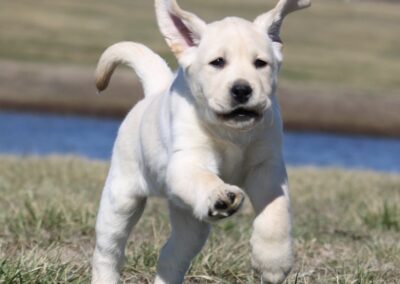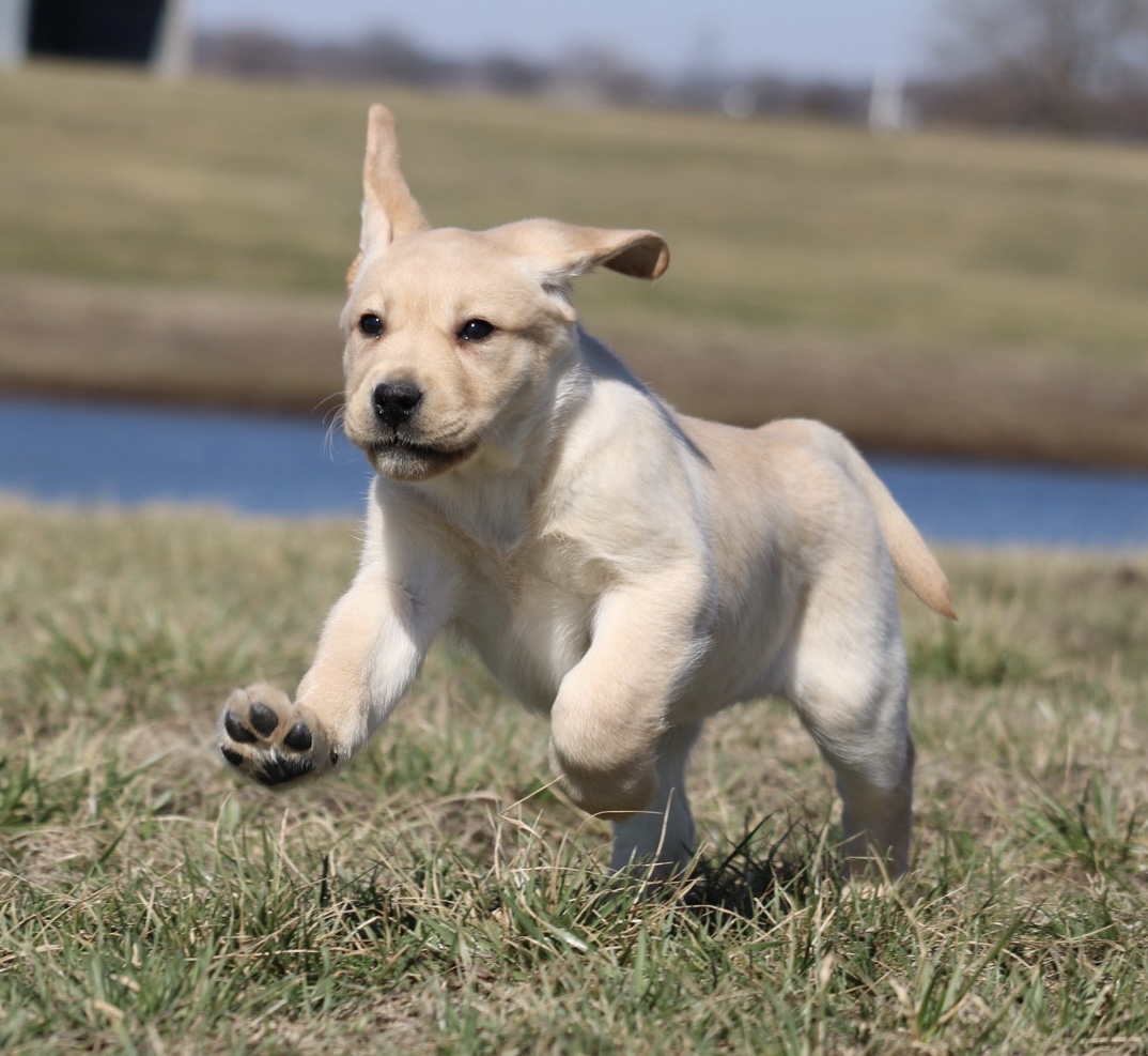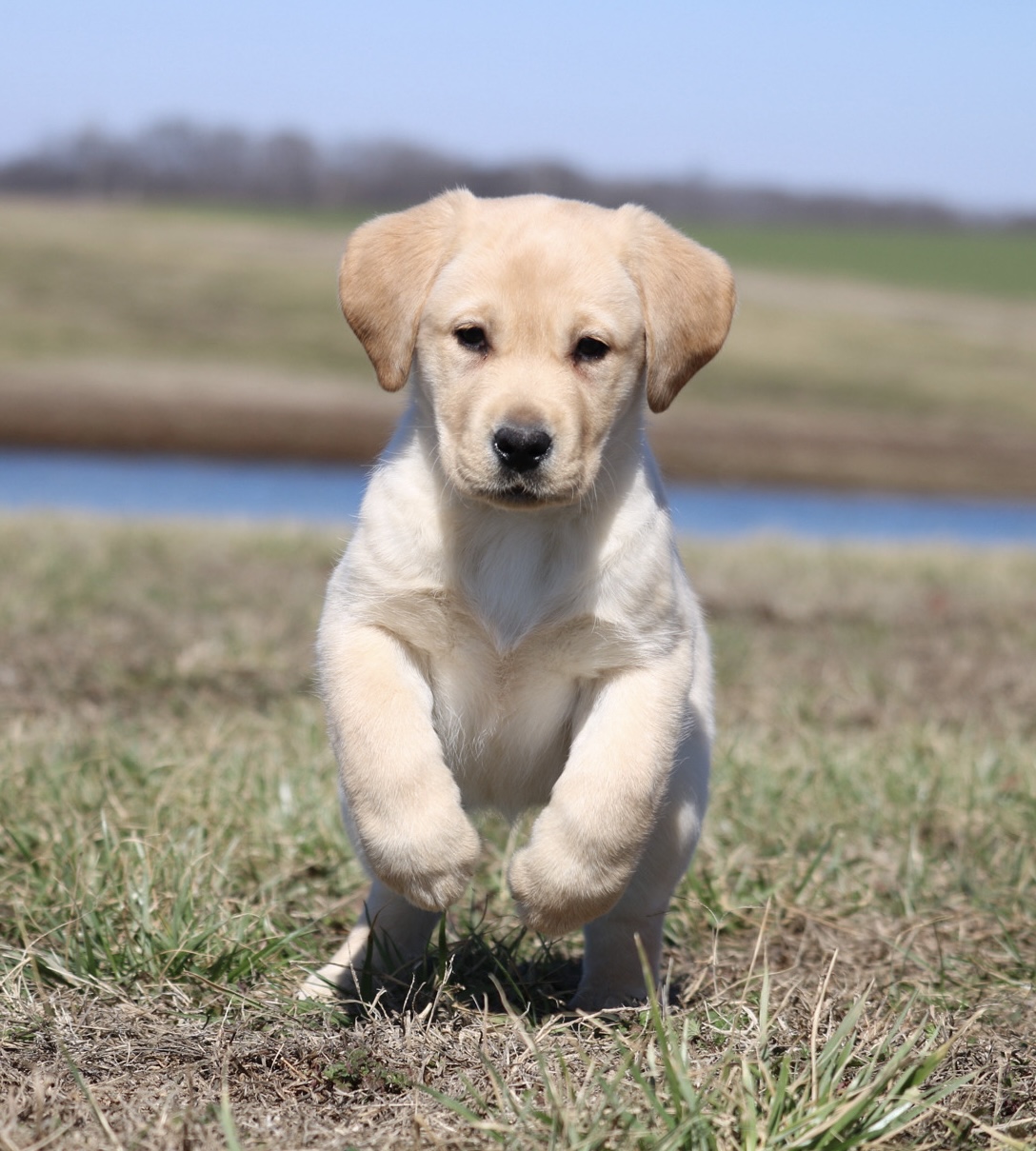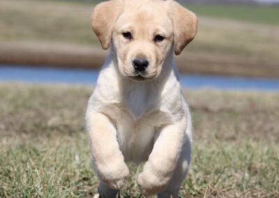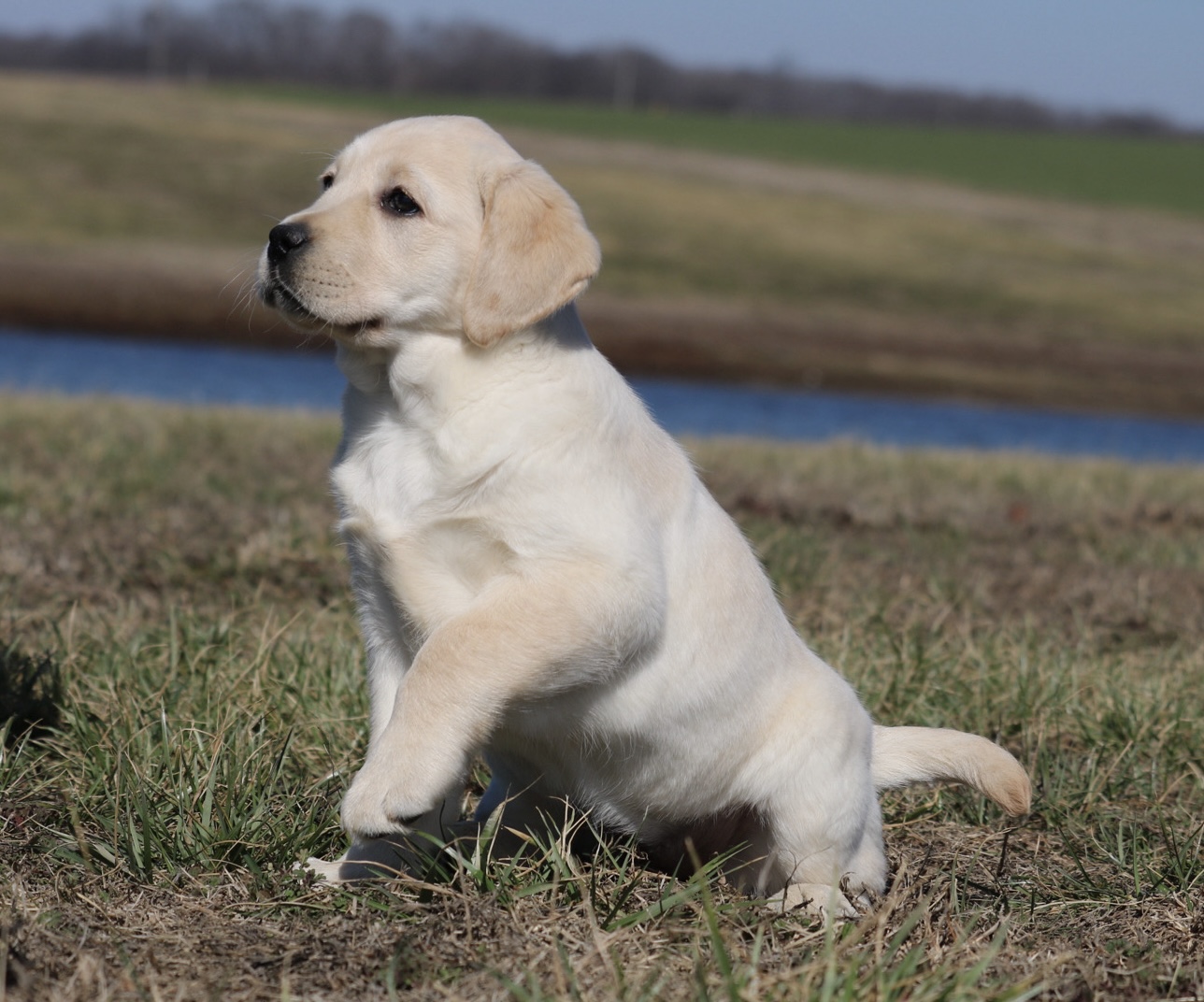 Retro and Sophie had a beautiful yellow litter on 12/30/25. We currently have 2 yellow females available and ready to go home now. Our puppies are placed with AKC limited registration only, meaning no breeding rights. We will require a questionnaire to be completed (We will send the link to you) before the home is approved. Please call for pricing information. The first four photos are of Ms. Tail (dark yellow) and the following four photos are of Ms. No Mark (light yellow). There are lots more photos of these puppies on Facebook!